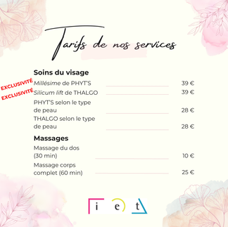 Les types de soins & coordonnées pour prendre rendez-vous se trouvent ci-dessous: